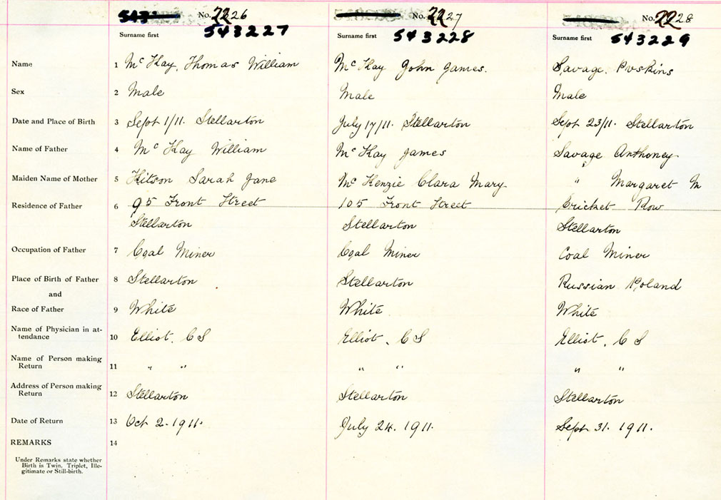 Male Birth Registration: Year: 1911 number: 54300229