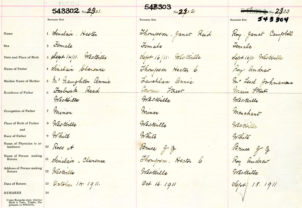 Female Birth Registration: Year: 1911 number: 54300302