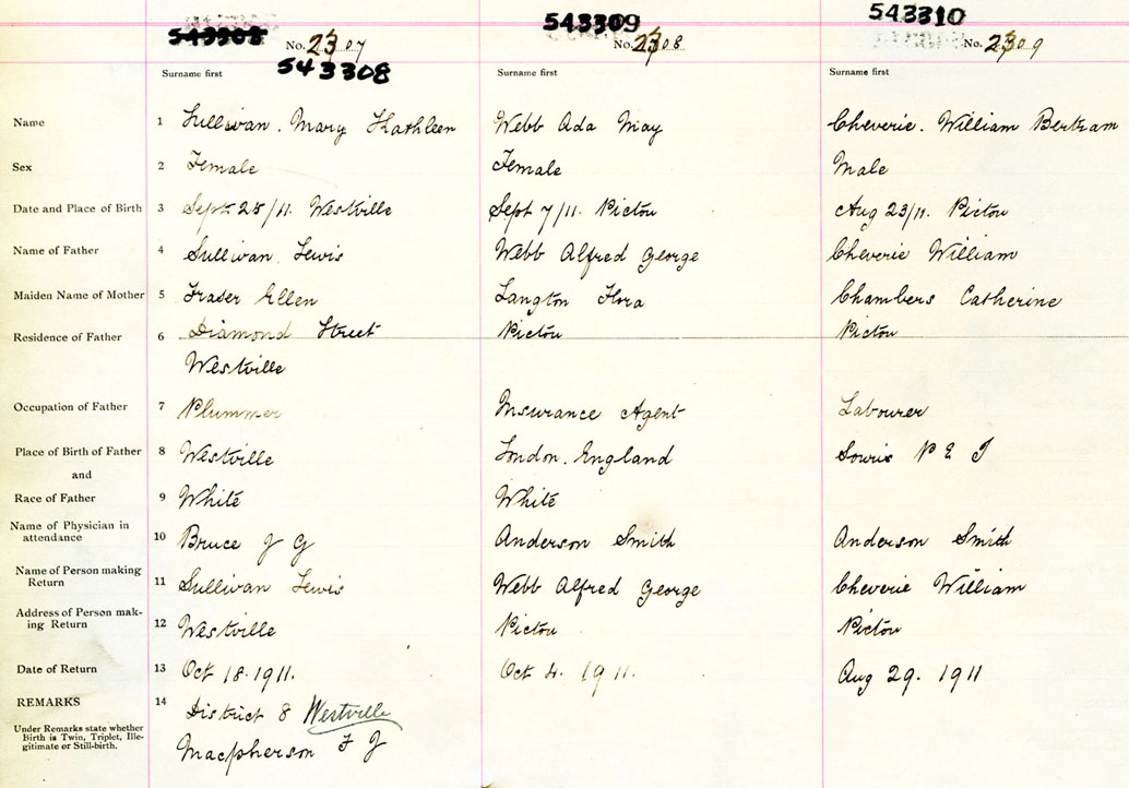 Female Birth Registration: Year: 1911 number: 54300308
