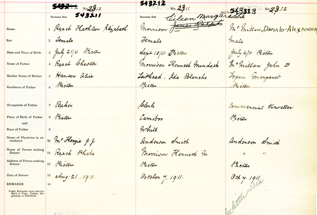 Female Birth Registration: Year: 1911 number: 54300311