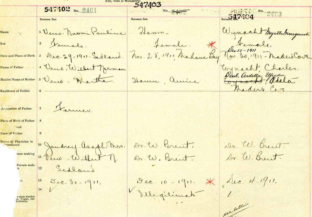 Female Birth Registration: Year: 1911 number: 54700404