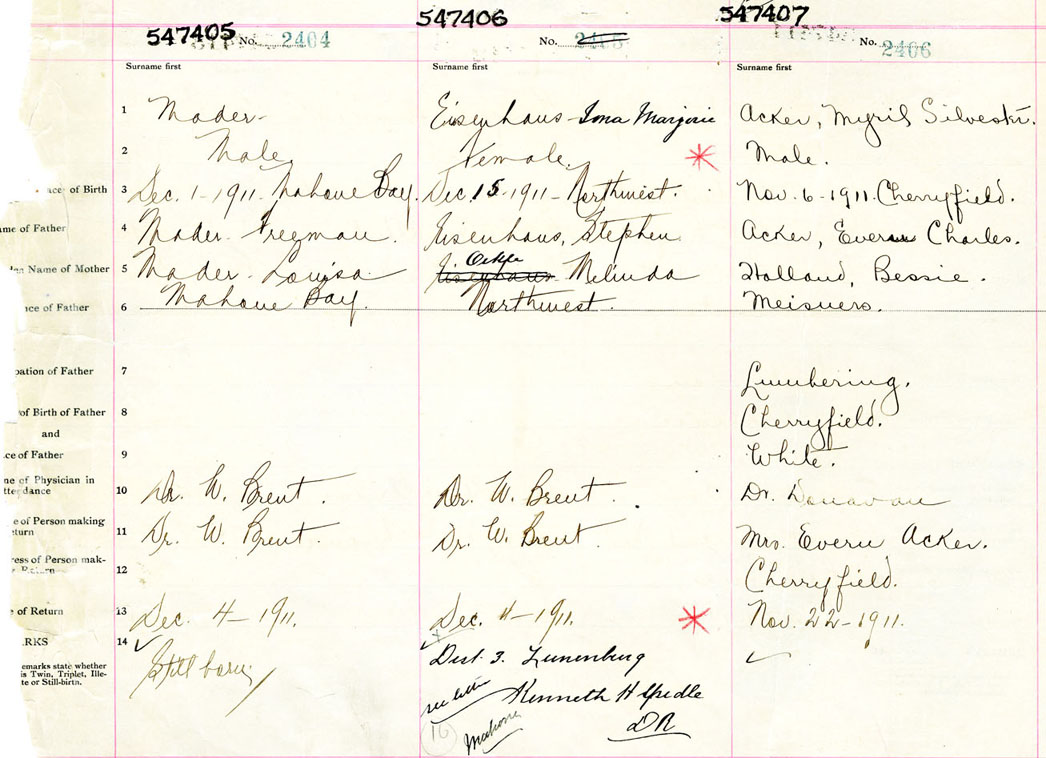 Male Birth Registration: Year: 1911 number: 54700407
