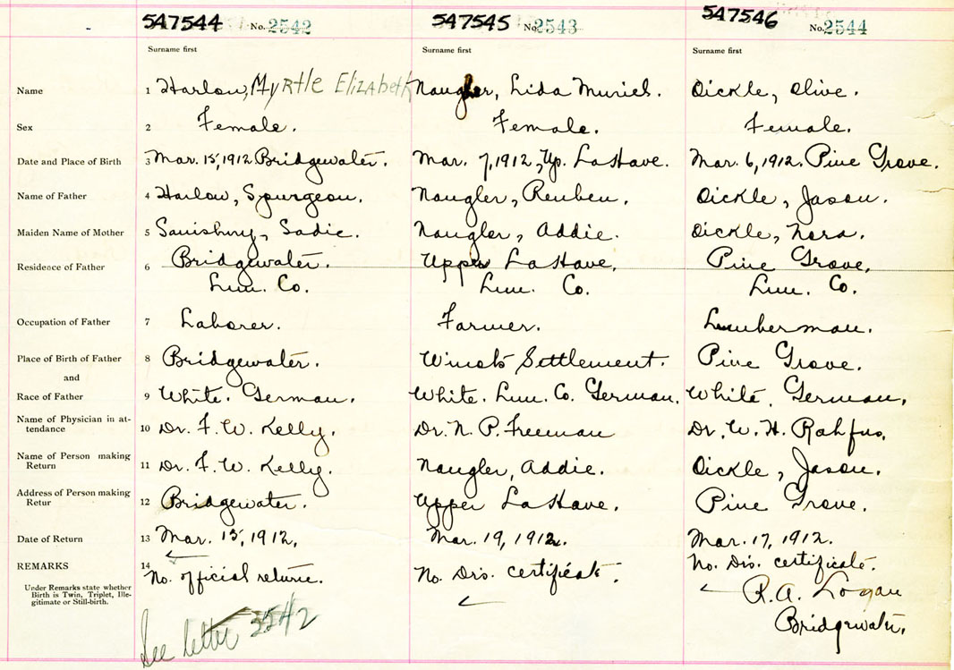 Female Birth Registration: Year: 1911 number: 54700546
