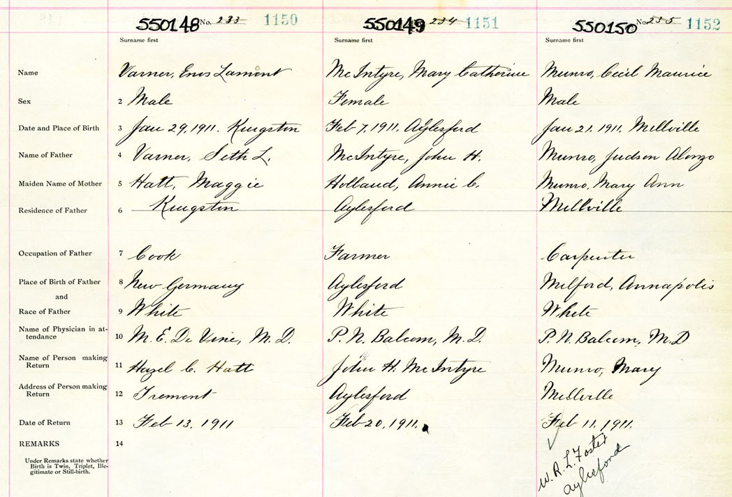 Male Birth Registration: Year: 1911 number: 55000148