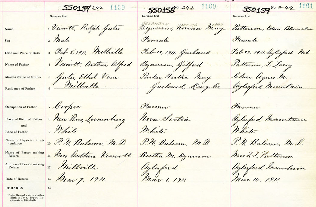 Male Birth Registration: Year: 1911 number: 55000157