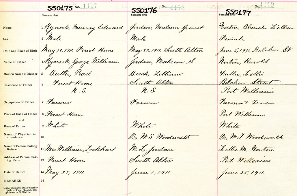 Male Birth Registration: Year: 1911 number: 55000175