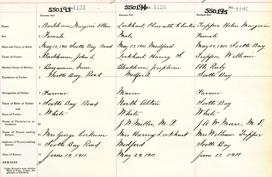 Female Birth Registration: Year: 1911 number: 55000193