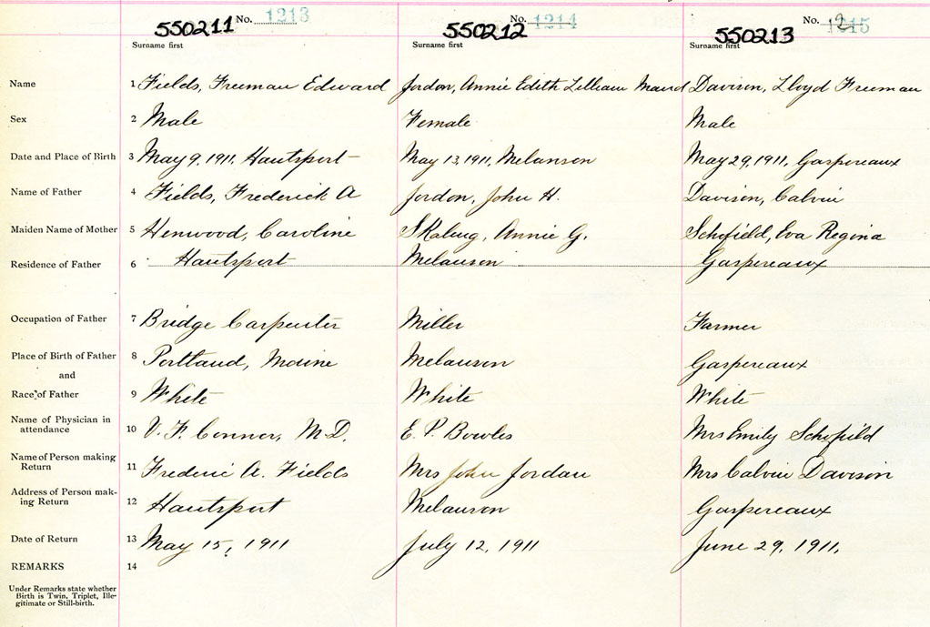 Male Birth Registration: Year: 1911 number: 55000211