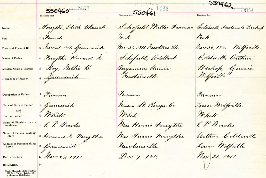 Male Birth Registration: Year: 1911 number: 55000462