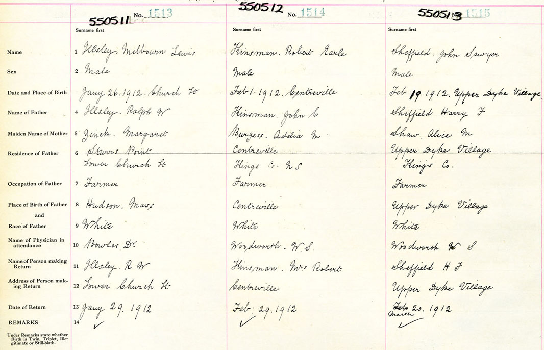 Male Birth Registration: Year: 1911 number: 55000513