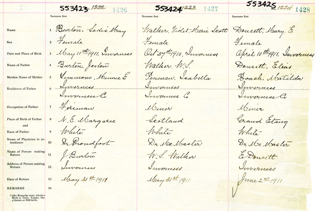 Female Birth Registration: Year: 1911 number: 55300425
