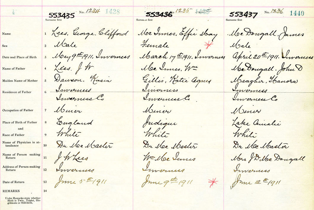 Male Birth Registration: Year: 1911 number: 55300437