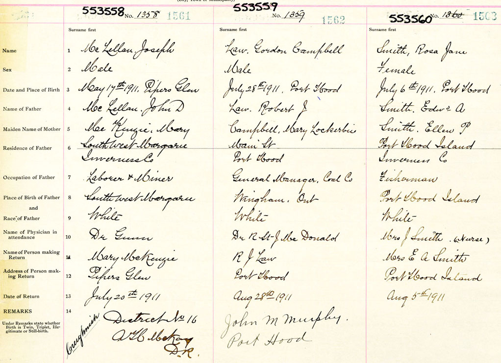 Male Birth Registration: Year: 1911 number: 55300558