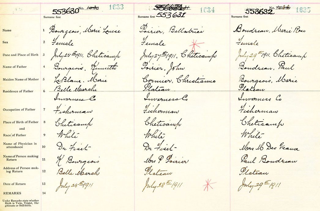 Female Birth Registration: Year: 1911 number: 55300632