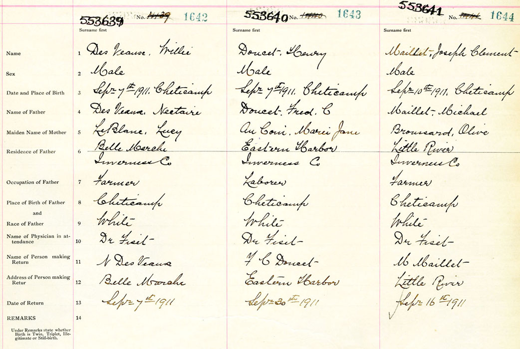 Male Birth Registration: Year: 1911 number: 55300641