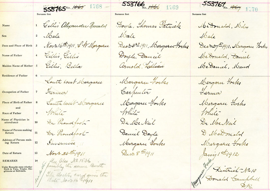 Male Birth Registration: Year: 1911 number: 55300765