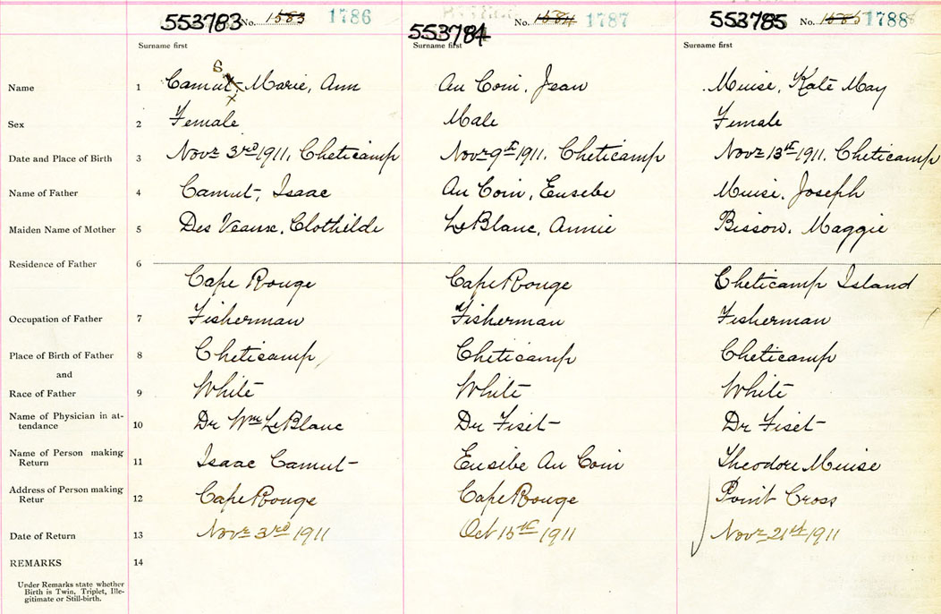 Female Birth Registration: Year: 1911 number: 55300785