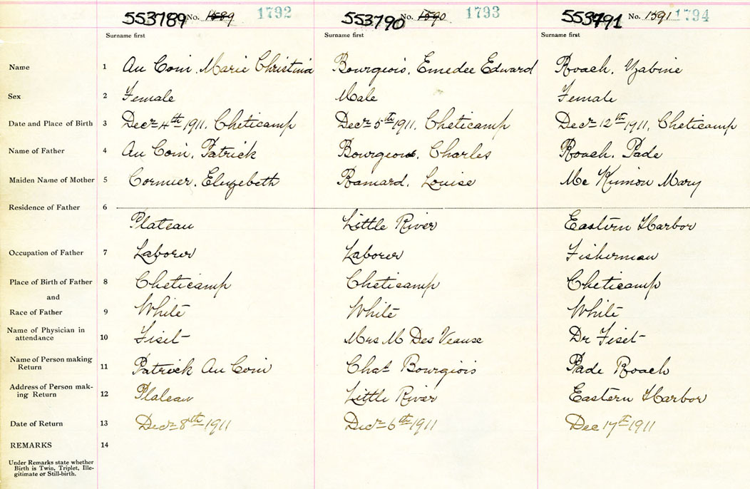 Female Birth Registration: Year: 1911 number: 55300791