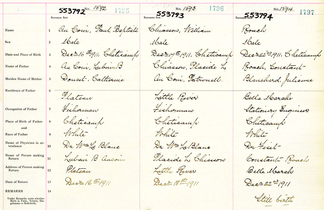 Male Birth Registration: Year: 1911 number: 55300794