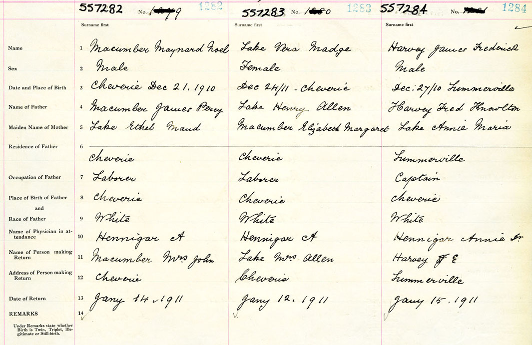 Male Birth Registration: Year: 1911 number: 55700282