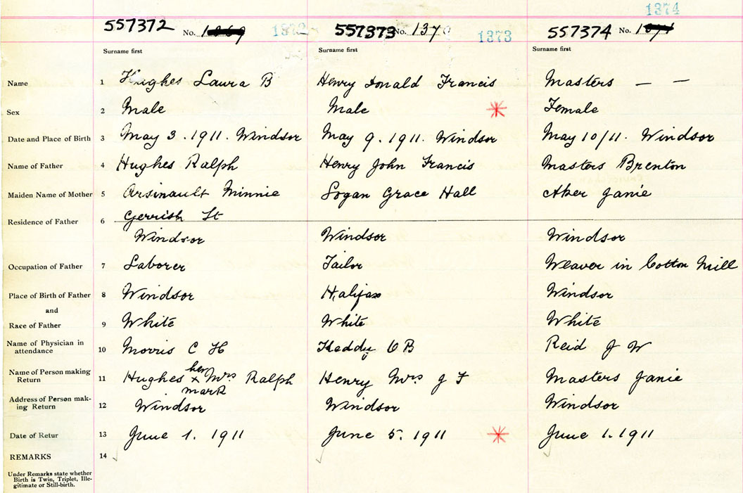 Male Birth Registration: Year: 1911 number: 55700372