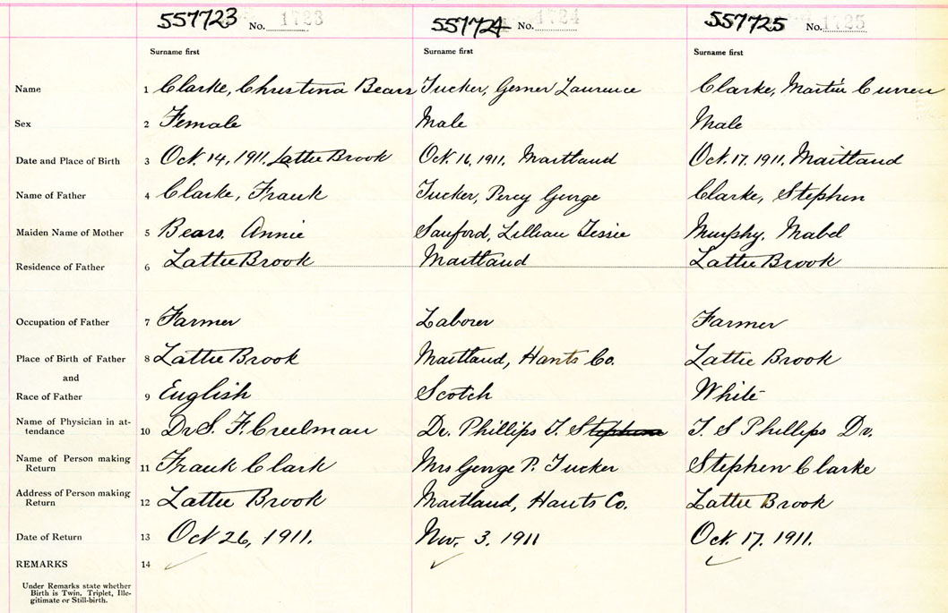 Female Birth Registration: Year: 1911 number: 55700723