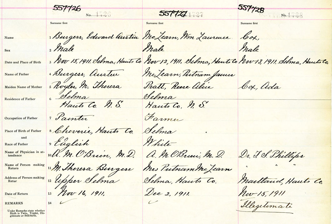Male Birth Registration: Year: 1911 number: 55700726
