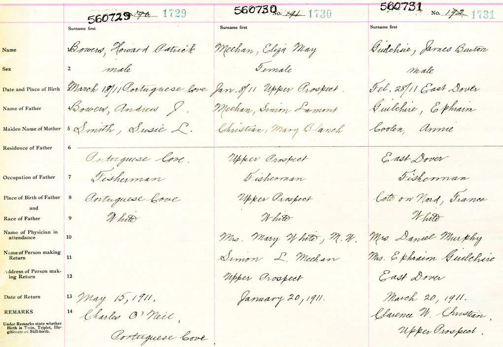 Male Birth Registration: Year: 1911 number: 56000731