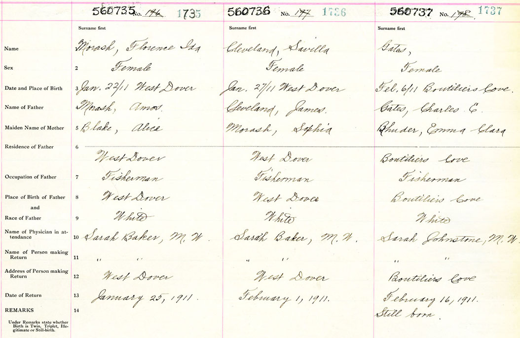 Female Birth Registration: Year: 1911 number: 56000737