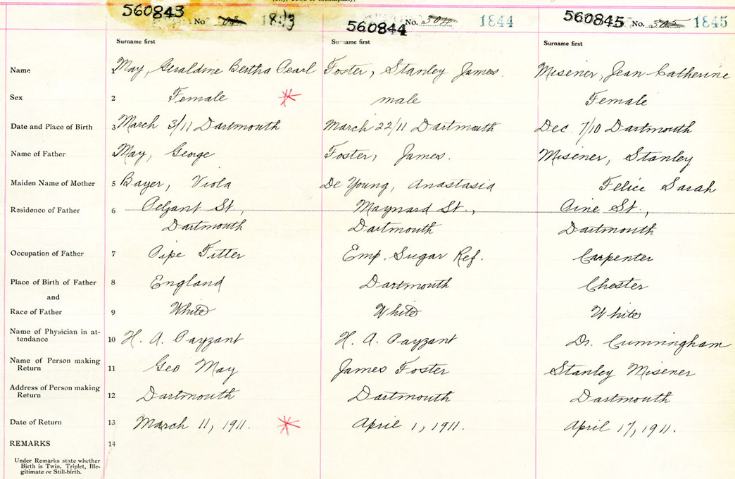 Female Birth Registration: Year: 1911 number: 56000843