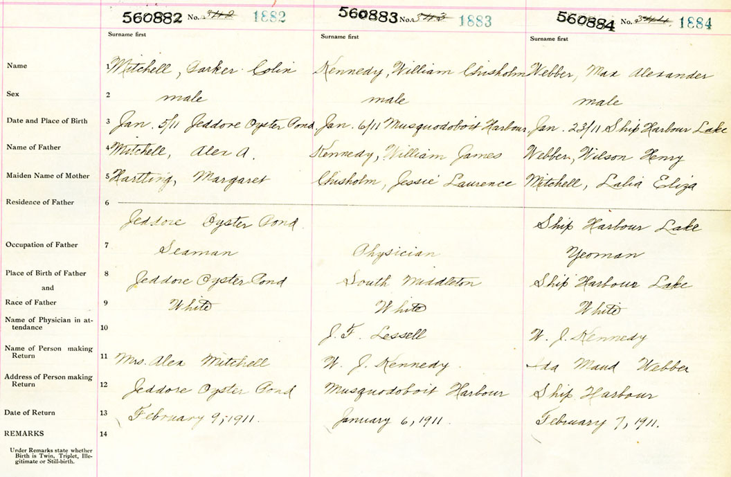 Male Birth Registration: Year: 1911 number: 56000882
