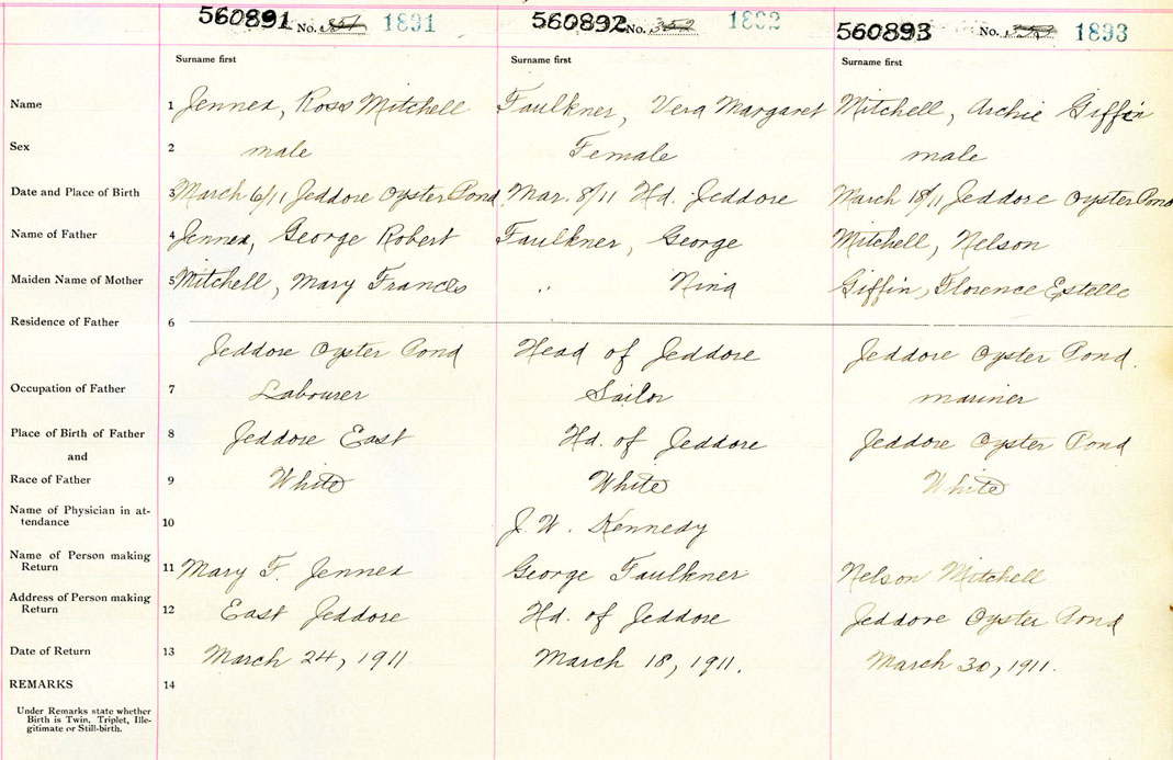 Male Birth Registration: Year: 1911 number: 56000893