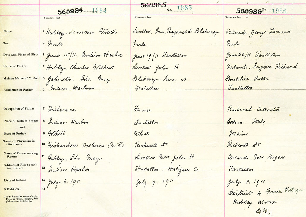 Male Birth Registration: Year: 1911 number: 56000984