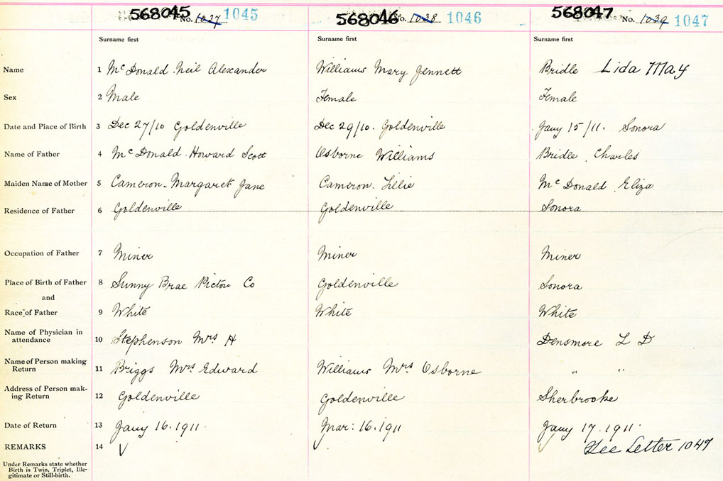 Male Birth Registration: Year: 1911 number: 56800045