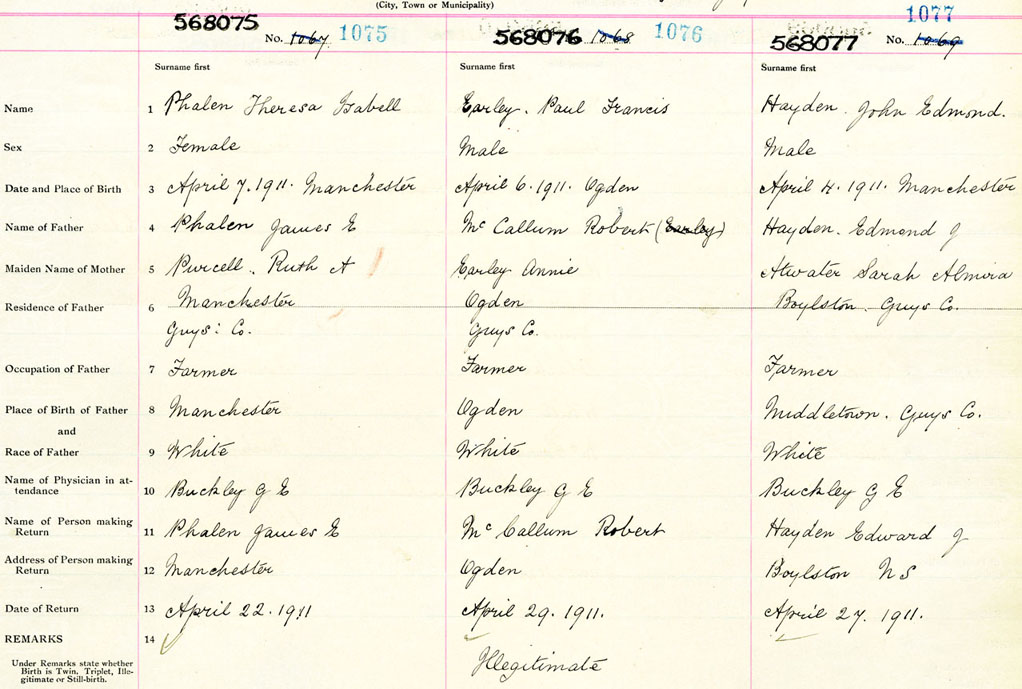 Male Birth Registration: Year: 1911 number: 56800077