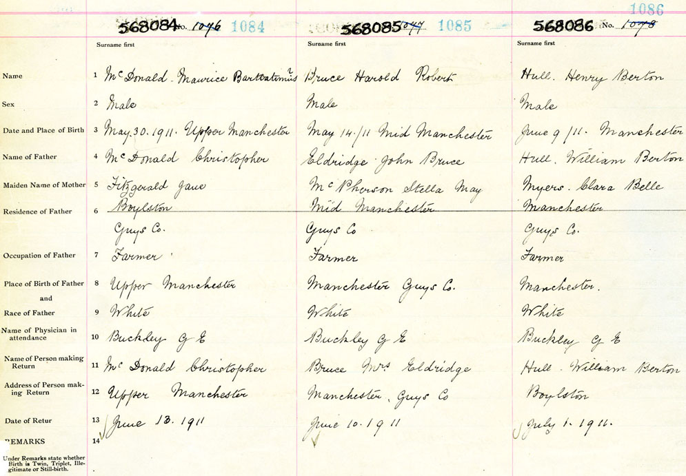 Male Birth Registration: Year: 1911 number: 56800086
