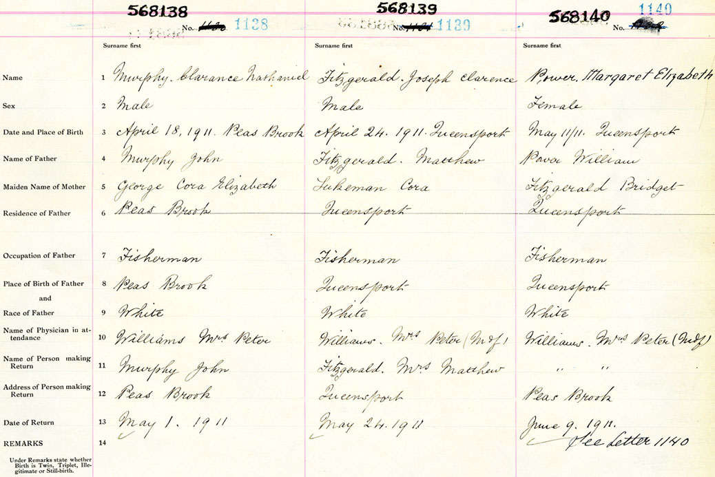 Female Birth Registration: Year: 1911 number: 56800140