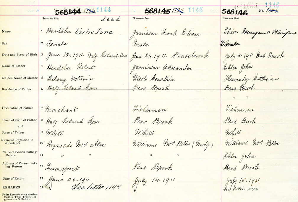 Female Birth Registration: Year: 1911 number: 56800146