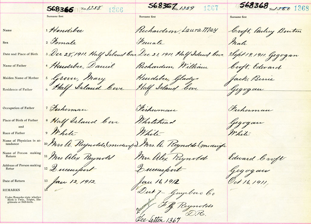 Male Birth Registration: Year: 1911 number: 56800368