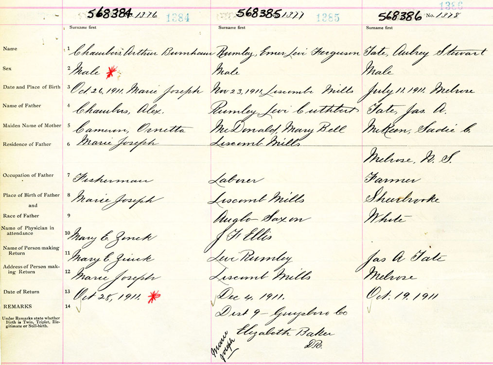 Male Birth Registration: Year: 1911 number: 56800384