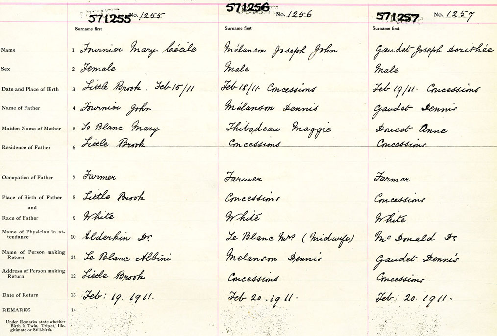 Female Birth Registration: Year: 1911 number: 57100255