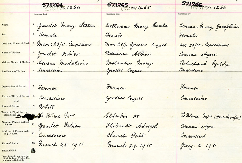 Female Birth Registration: Year: 1911 number: 57100264
