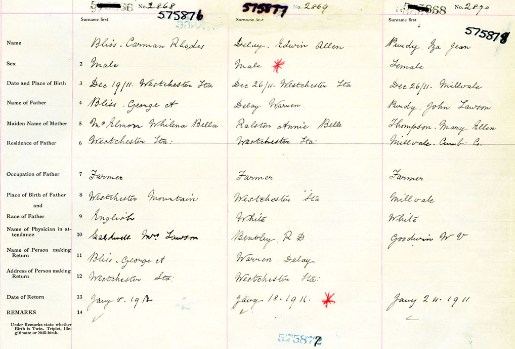 Female Birth Registration: Year: 1911 number: 57500878