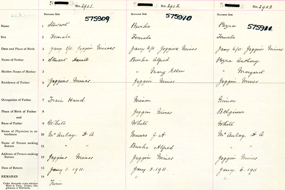 Female Birth Registration: Year: 1911 number: 57500911