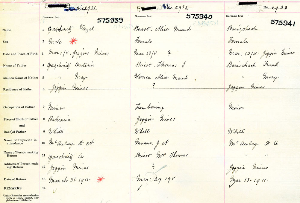Female Birth Registration: Year: 1911 number: 57500941