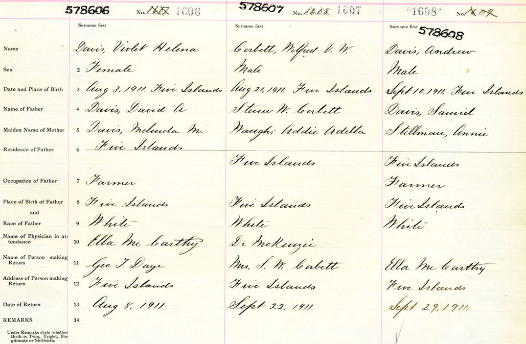 Male Birth Registration: Year: 1911 number: 57800608