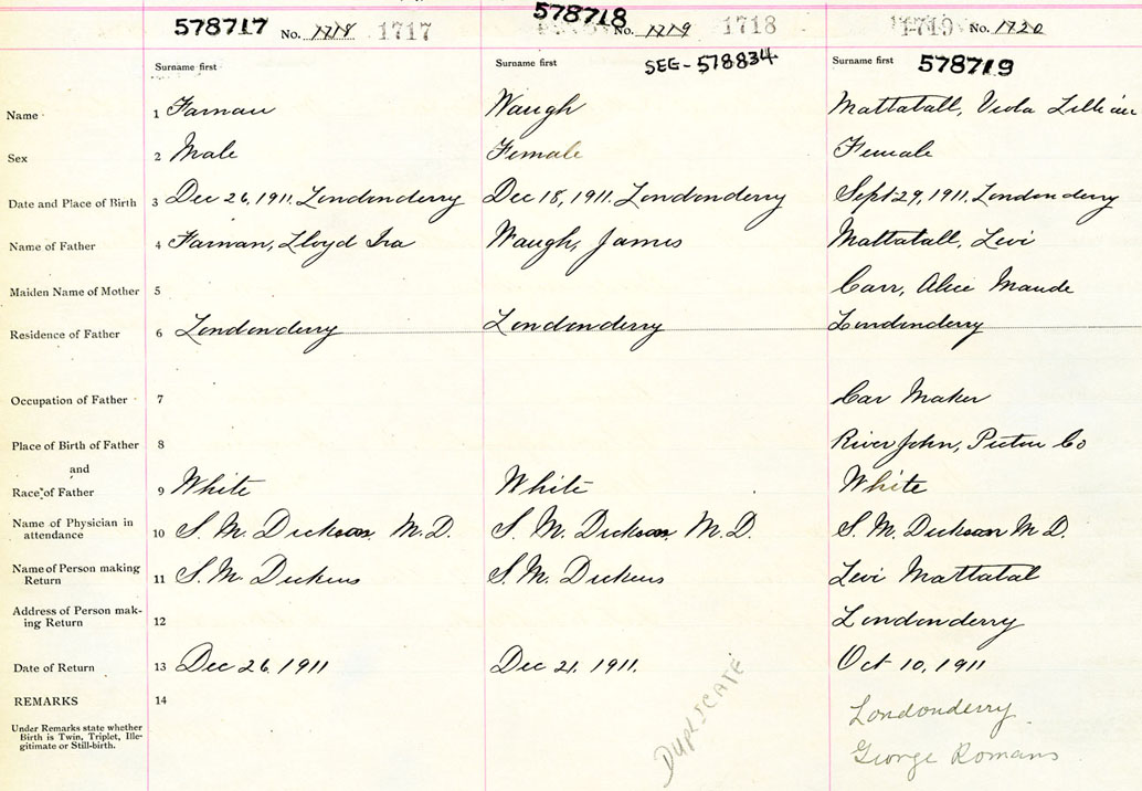 Female Birth Registration: Year: 1911 number: 57800719
