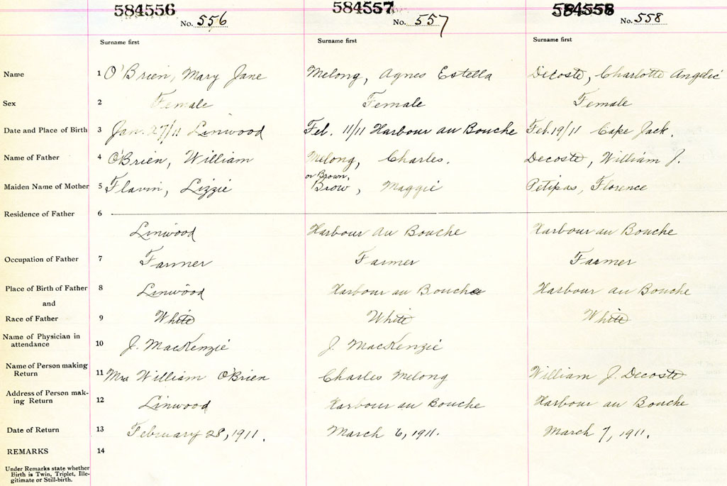 Female Birth Registration: Year: 1911 number: 58400558