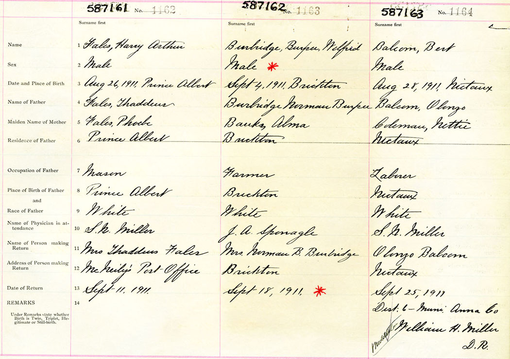 Male Birth Registration: Year: 1911 number: 58700163