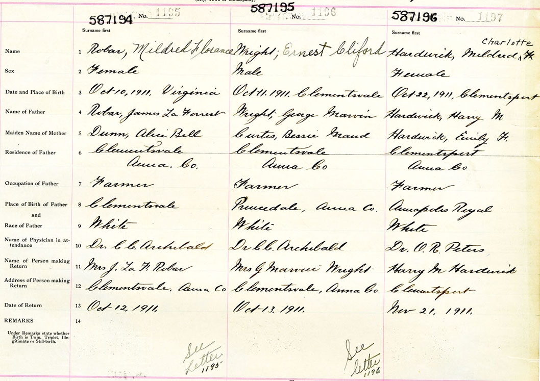 Female Birth Registration: Year: 1911 number: 58700196